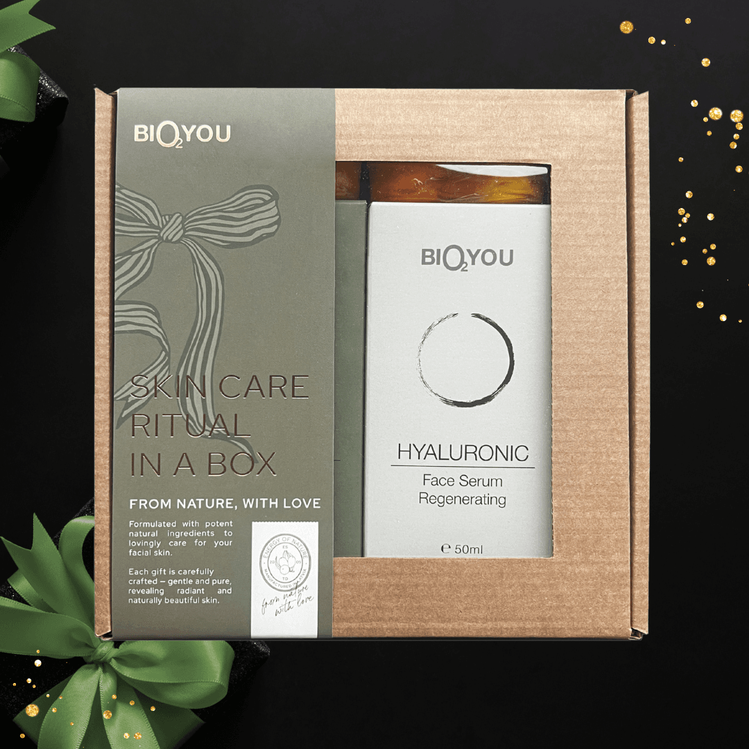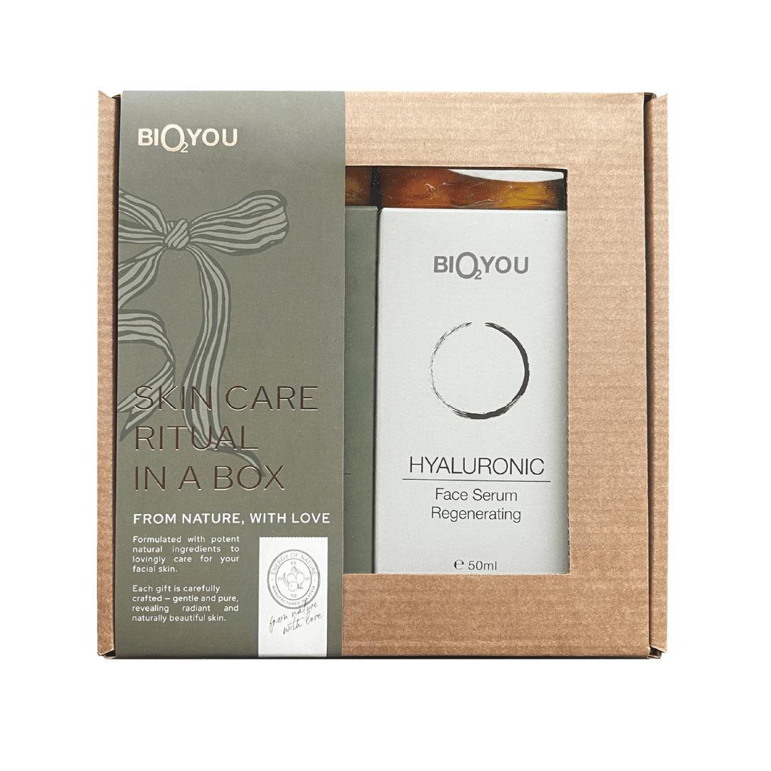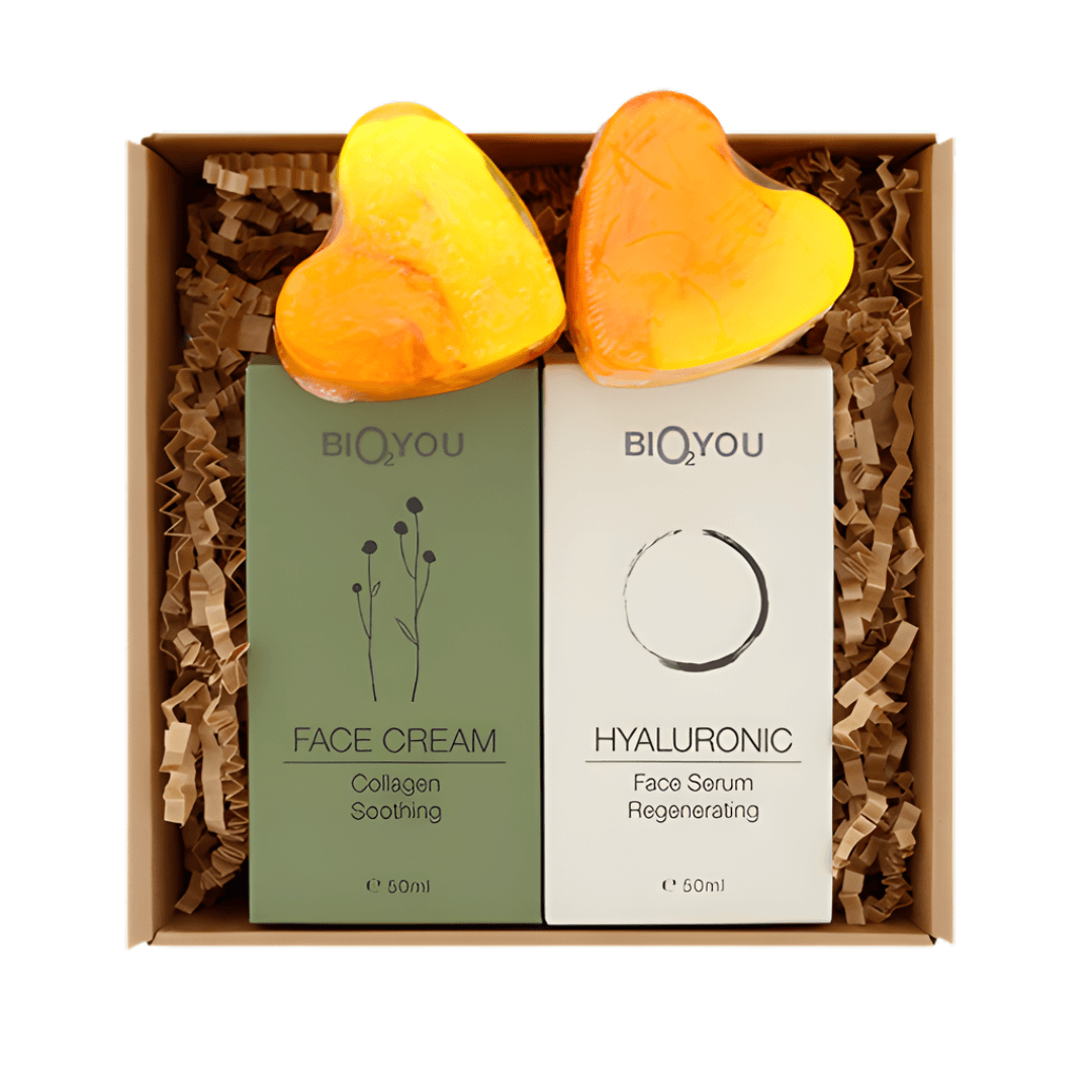Dāvanu komplekts – Sejas serums ar hialuronskābi, Kolagēna sejas krēms, Ziepīte sirsniņas forma