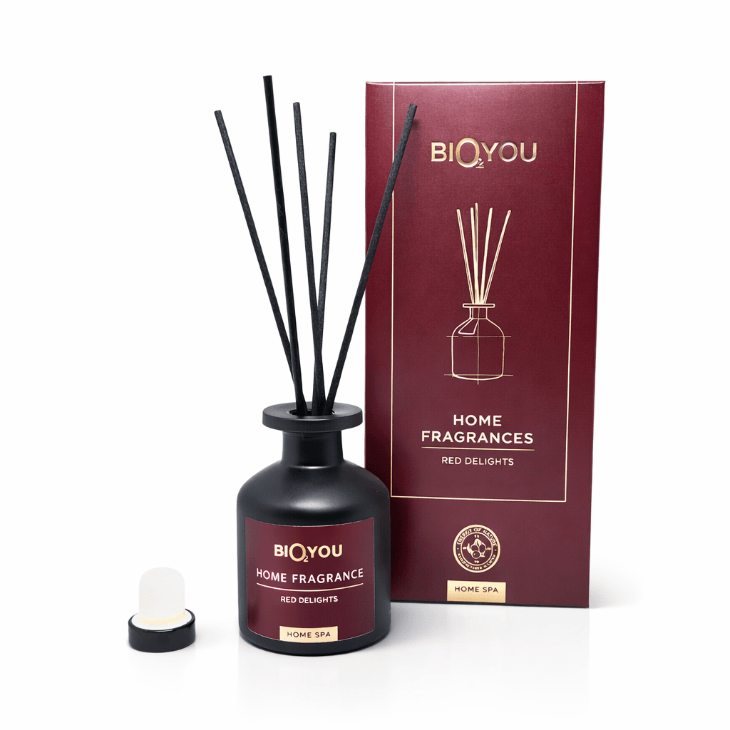 HOME SPA Red Delights mājas aromāta difūzors 50ml ir augļains, grezns un enerģijas pilns telpas aromāts, kas radīts, lai piešķirtu mājai dzīvīgumu un siltumu. Izgatavots ar ekoloģisku bāzi un sabalansētu aromātisko kompozīciju, šis luksusa mājas difūzors nodrošina vienmērīgu un ilgstošu smaržas izplatīšanos.